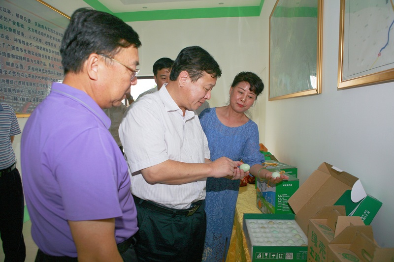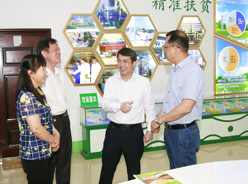 • 2016年7月5日,自治区党委书记彭清华到田阳县篮球下注平台 - 篮球比赛下注平台精准扶贫蛋鸡养殖基地视察
