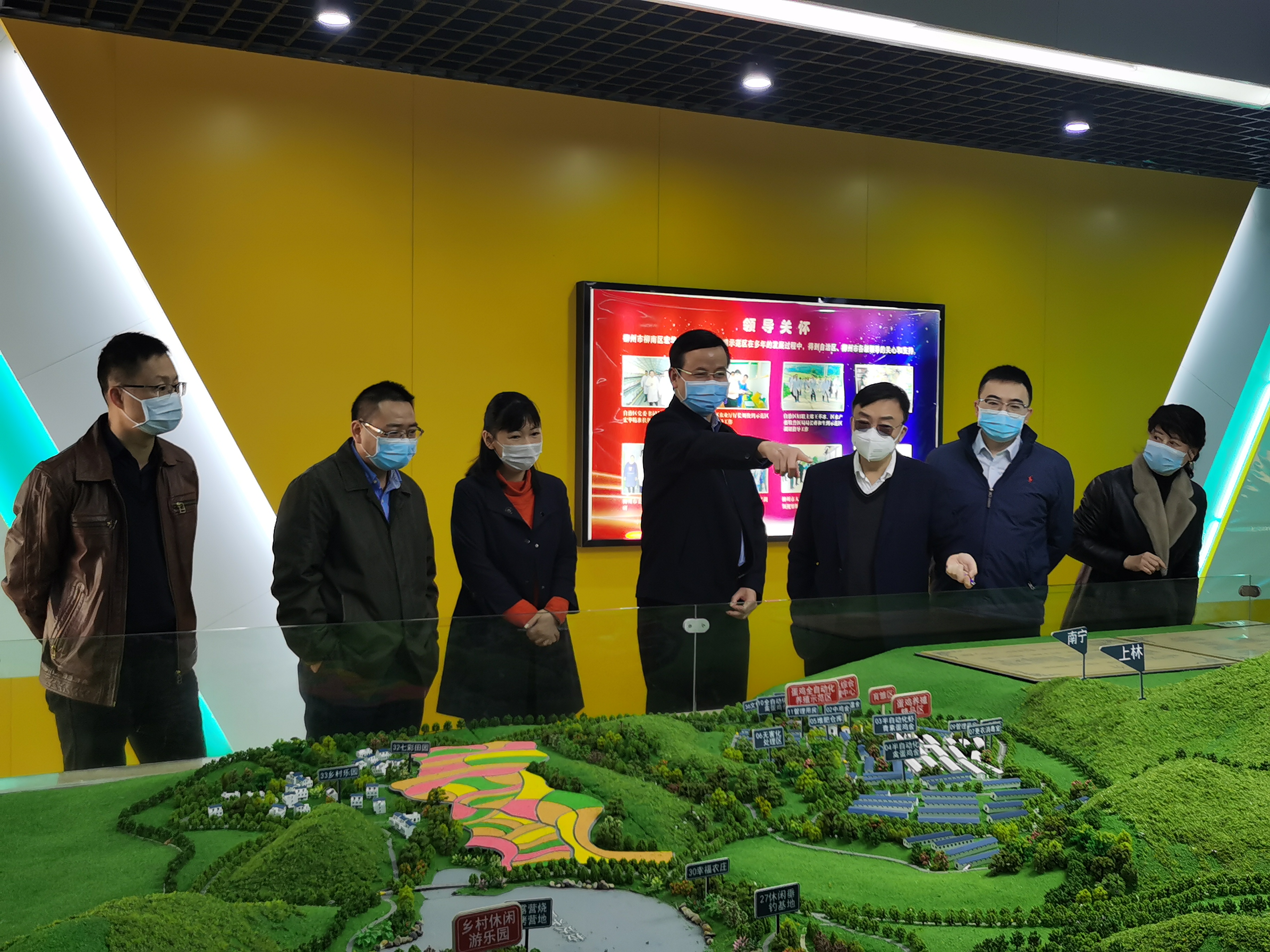 • 2020年2月柳州市朱富庭副市长等领导一行莅临中田示范园,关心疫情期间篮球下注平台 - 篮球比赛下注平台产、供、销等复工复产情况.对于企业在疫情期间的困难给予关注和指示。