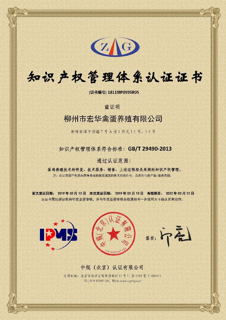 二、2019年年3月15日,3月27日,禽蛋公司、饲料公司分别获得中国知识产权管理体系认证证书 |