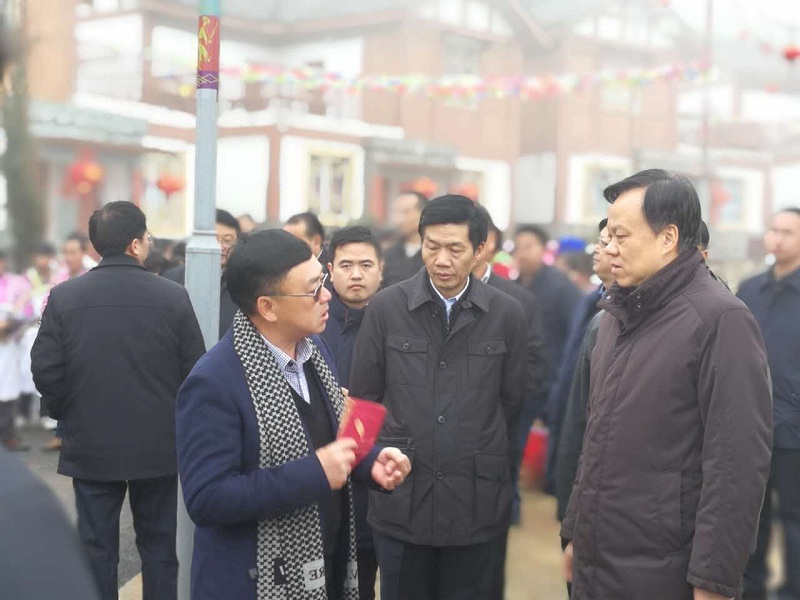 • 2017年2月7日,贵州省委书记陈敏尔在贵州石门乡听取李宁华董事长介绍篮球下注平台 - 篮球比赛下注平台"动车式"精准扶贫模式