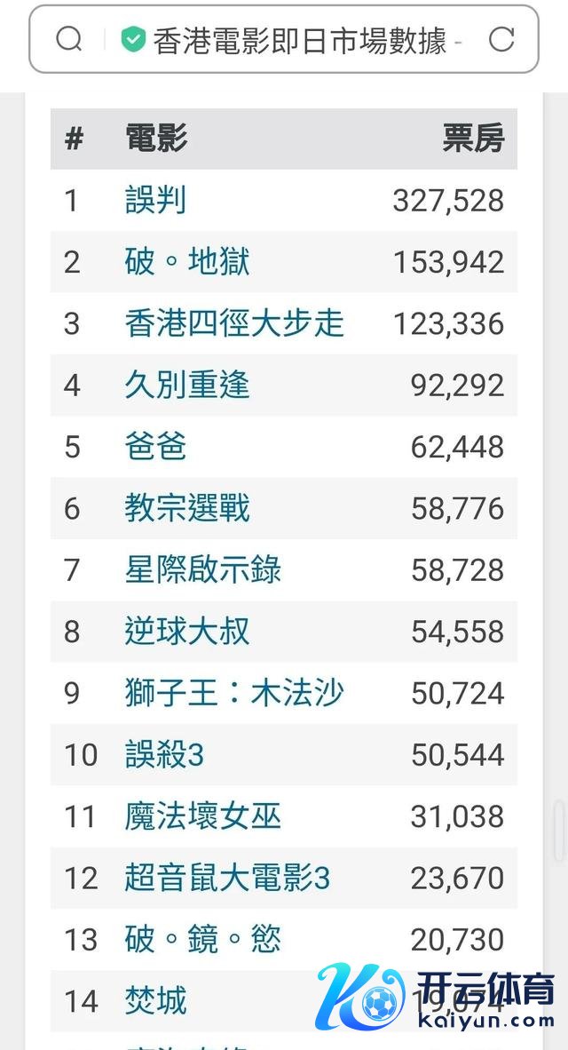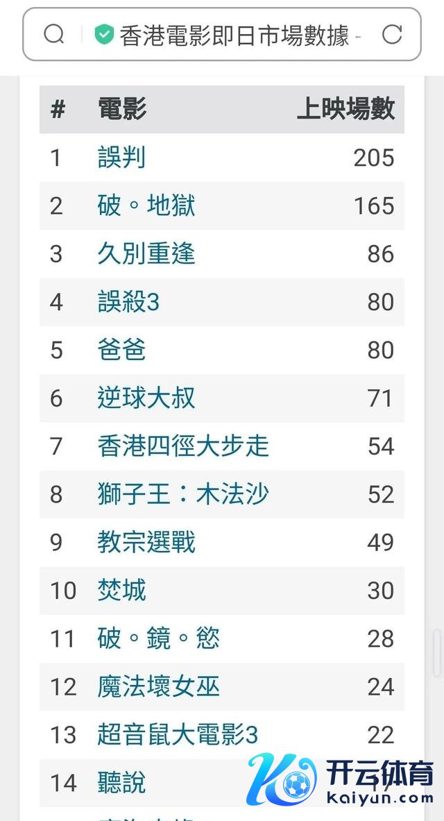 而在 1 月 9 日上映的两部新片中,陈念念诚监制的《误杀 3》备受柔顺。首日排片 80 场,不雅影东谈主次 708 东谈主,场均东谈主次 8.85 东谈主,首日票房仅 5 万港币的得益,似乎有些差强东谈主张。按照现在的趋势,首周四天票房展望在 40 万港币傍边,最终票房可能在 120 万 - 200 万港币之间。有网友 “吐槽大王” 指摘谈:“《误杀 3》莫得达到我的预期,嗅觉剧情有点陷落,但愿后头能有惊喜。”