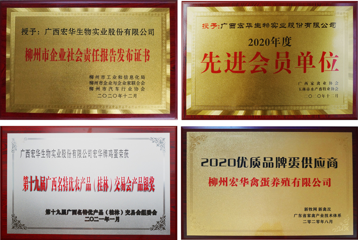2020年,公司荣获广西家禽业协会、玉林市水产畜牧业协会授予"2020年度先进会员单位"称号。
