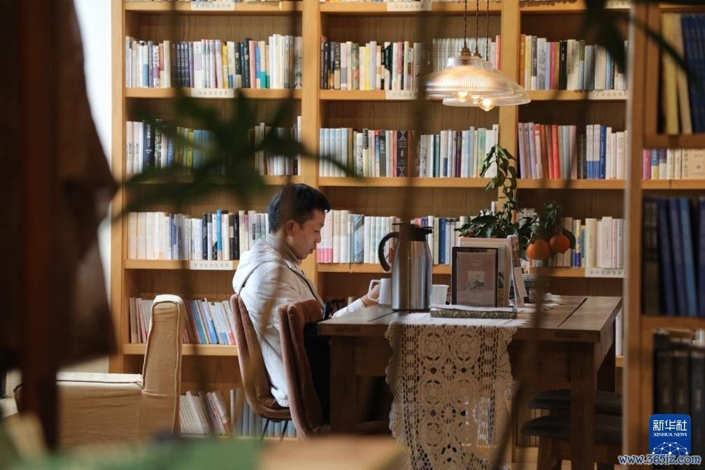r2024年12月19日,搭客在蒲江县明月村“远家”文化空间念书品茶。新华社记者杨进摄
