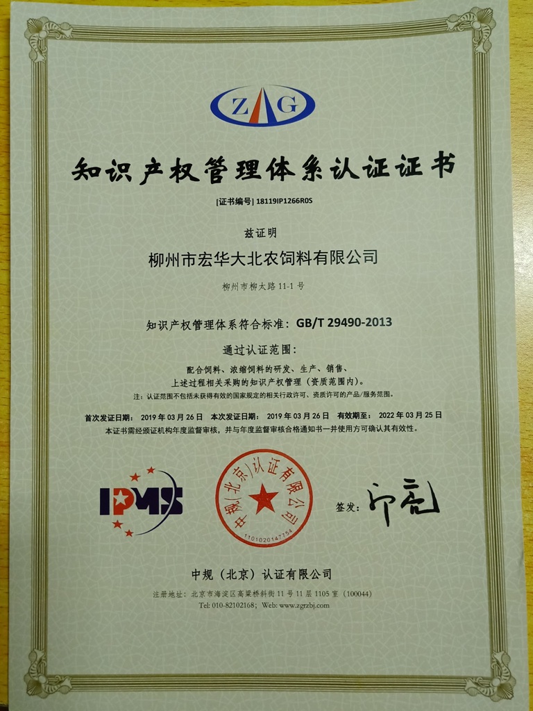 二、2019年年3月15日,3月27日,禽蛋公司、饲料公司分别获得中国知识产权管理体系认证证书 |