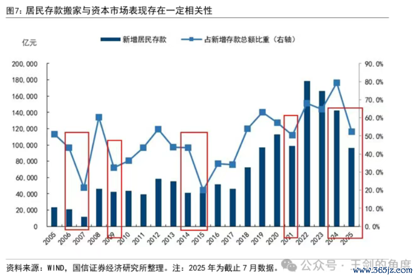 对此,国信证券默示,转头历史,2005年以来我国出现过五次明显的居民进款搬家,区分为2006-2007年,2009年,2012-2015年,2021年,2024-2025年。从历轮进款搬家来看,低利率是股东进款搬家的要素之一,但成本市集进展才是中枢驱动要素。