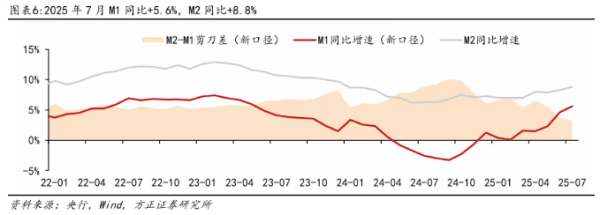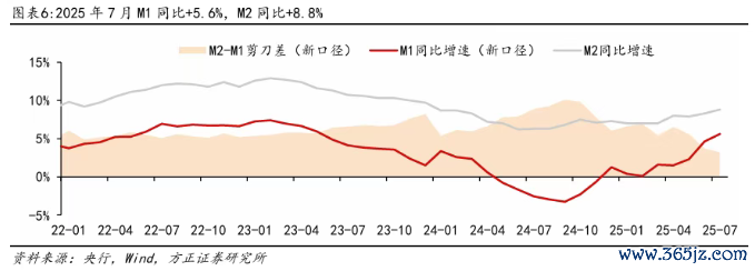 中信证券指出,凭据中国东谈主民银行数据,7月居民进款同比多减7800亿元;非银进款同比多增1.39万亿元。此外,M2-M1同比增速“剪刀差”收窄,反馈资金活化进度提高,进款千里淀风光收缩。
