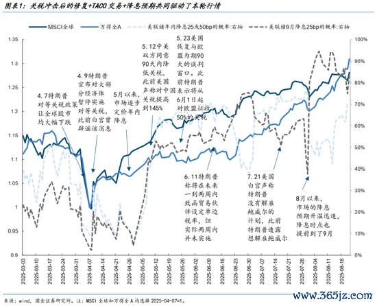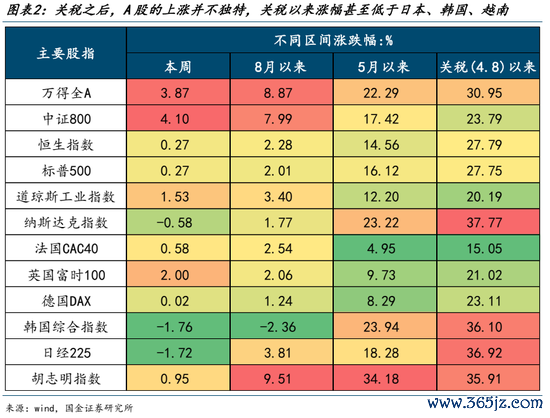 本周(20250818-20250822,下同)上证指数谗谄3800点,续创10年新高。从人人主要股指来看,本周A股照实走出寂然行情,但拉长来看,从4月关税之后人人股市其实王人出现了彰着高潮,致使日韩和越南的股指比较A股的涨幅更大,A股的高潮并不特有,这也意味着,A股本轮的高潮并不单是是由“源远流长的增量资金”驱动,更首要的是人人市集王人在对两大宏不雅叙事进行订价:其一,特朗普告示平等关税后,人人股市均受到彰着冲击,但平等关税仅收效13小时后特朗普告示对大部分经济体暂停关税,人人股市均迎来彰着拓荒;其二,从5月启动,市集启动逐渐订价年内降息,与此同期,TACO往复也永久流畅市集;8月以来,市集降息预期彰着升温,降息瞻望的手艺点也提前到了9月。如果从人人视线去看A股的反弹,就不会简短困于进款搬家的逻辑,4月以来的驱动逻辑的变化能够才是市集改日的中枢。