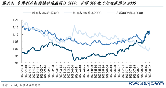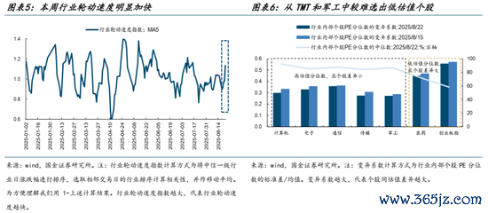 4月关税冲突以来,TMT+军工板块涨幅靠前,行业层面的全体估值当下已达到历史较高水平,里面个股估值中位数也到达历史高位,且个股之间估值分位数的各异握住裁减,现在成长赛说念里面仅医药行业、创业板指还保执着较大的个股估值分位数各异,可能是下一个“销亡低估值”的标的。在全市集全体有限的估值延长空间下,从上周启动,行业轮动速率加速,成长里面执续呈现从国证2000为代表的小盘成长向以创业板指为代表的大盘成长切换的特征。