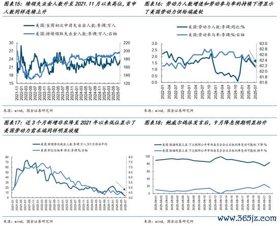 本周五晚,好意思联储主席鲍威尔在杰克逊霍尔央行年会上开释了明晰的“鸽派”信号:“风险均衡的革新能够意味着需要调度计策”。意味着好意思联储在通胀风险与服务市集风险之间从头均衡,阶段性关于通胀的担忧低于关于服务市集的担忧。最初,是通胀风险的暂时回落:好意思联储觉得关税关于价钱的影响是“一次性”的,诚然这不代表一次性就能反馈绝对,关税影响通胀的旅途主要有两个:一是,工东说念主因物价高潮而要求更高工资,从而激发“薪资—价钱”的上升螺旋,但现在由于服务市集地临更大的下行风险,这种情景出现可能性较小;二是,关税影响通胀预期,现在来看耐久通胀预期仍较结识,与耐久通胀规齐截致。与此同期,服务市集的风险却在积蓄:一方面,执续领取安静金东说念主数已达到2021.11以来最高水平,畴前一个月首申东说念主数也在彰着上升;另一方面,本年以来,劳能源市集的供给端和需求端王人显贵放缓,这种荒谬情况意味着服务市集正在恶化。