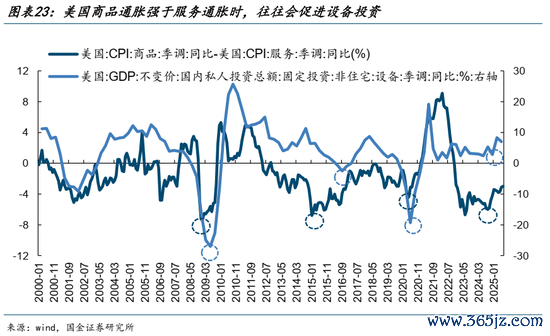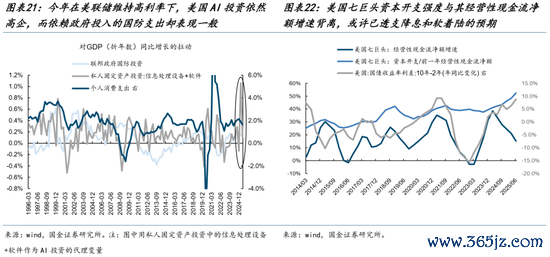 (2)在制造业投资上,更值得不雅察的是,外洋制造业投资或替代AI投资成为新的干线,这是因为畴前,科技巨头的成本开支强度(成本开支占筹商性现款流比例)往往与其筹商性现款流的增速正有关,而从2025年启动科技巨头的AI投资强度在高利率环境下继续上扬,而且照旧与其筹商性现款流增速出现了彰着的背离,转而由“由负转正”的10Y-2Y利差复古着它继续上行,能够体现出科技巨头在AI投资决议上,对改日降息预期和经济“软着陆”预期的“透支”;相反,与供应链重构有关的传统制造业投资一方面依赖政府补贴(雷同国防支拨),另一方面制造业景气度本人就更依赖于信贷投放,这王人使得它对低的资金成本更为敏锐。