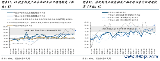 盈利的扩散来自于外需的拉动,尤其是外洋投资的朝上。本年1-7月,中国出口金额增速保执较高水平,且在6月份出口价钱指数转正。从结构上来看,主要的拉动是两条投资链:一是AI有关投资,算力基础设施中所需的集成电路、印刷电路、蓄电板、光缆出口高速增长;二是传统制造业有关投资,产能树立所需的专用机械、工程机械、机械零部件出口高速增长。