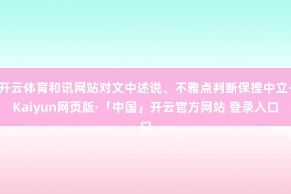 开云体育和讯网站对文中述说、不雅点判断保捏中立-Kaiyun网页版·「中国」开云官方网站 登录入口