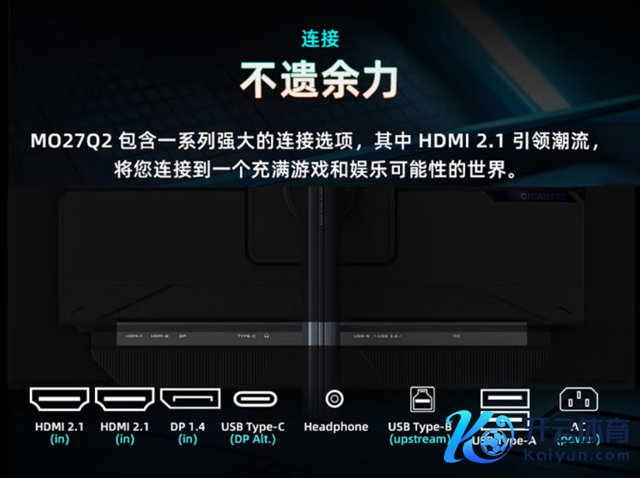 接口方面,技嘉 MO27Q2 电竞显现器数目丰富,规格高阶,为用户提供了出色的外接和显现输出聘任,不挑线材还复旧 DP 反向充电,桌搭愈加浮浅、更灵验率。