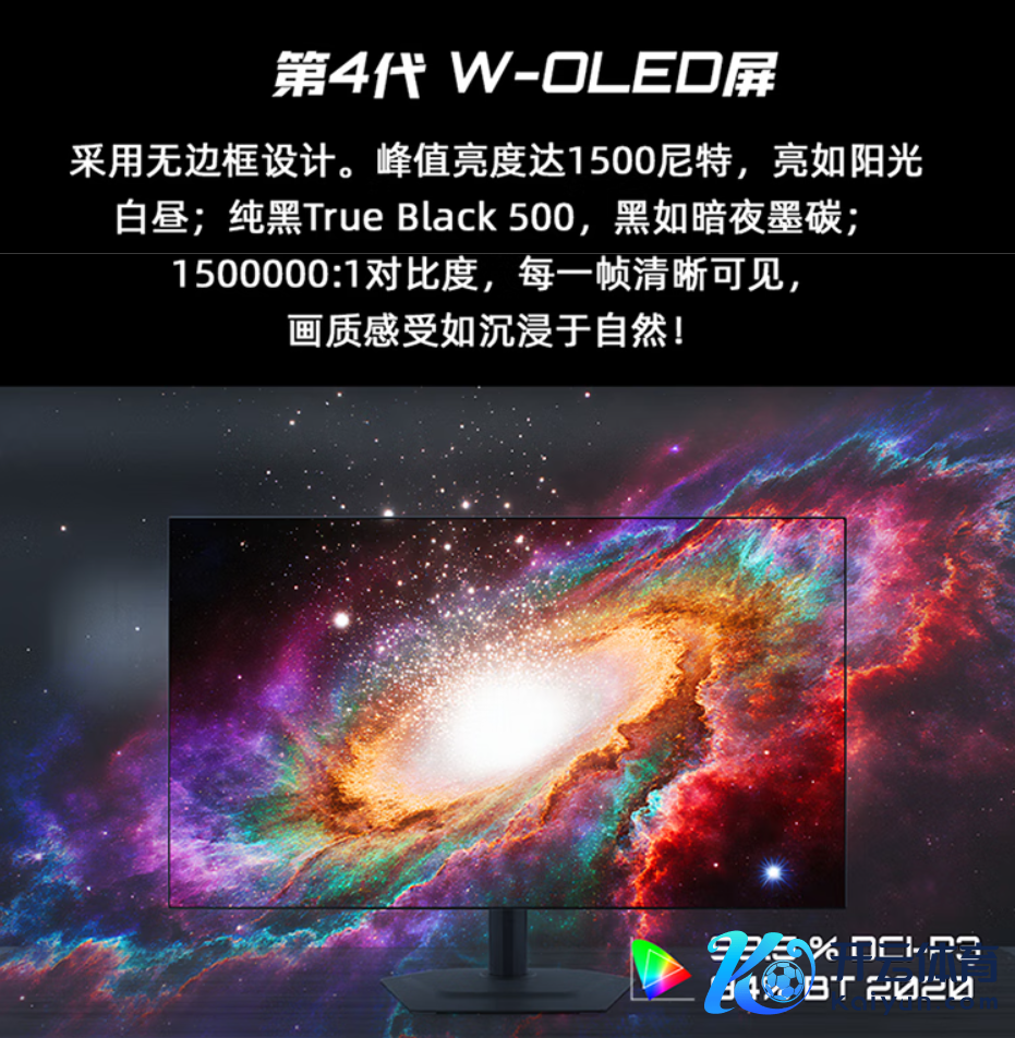 终末,再给环球保举两款专科电竞显现器,第一款是技嘉魔鹰 Q280G 电竞显现器。它采用第四代 W-OLED 期间,领有四层 RGB 堆叠贪图,峰值亮度可达 1500nits,复旧 True Black 500 认证以及 1500000:1 超高对比度。