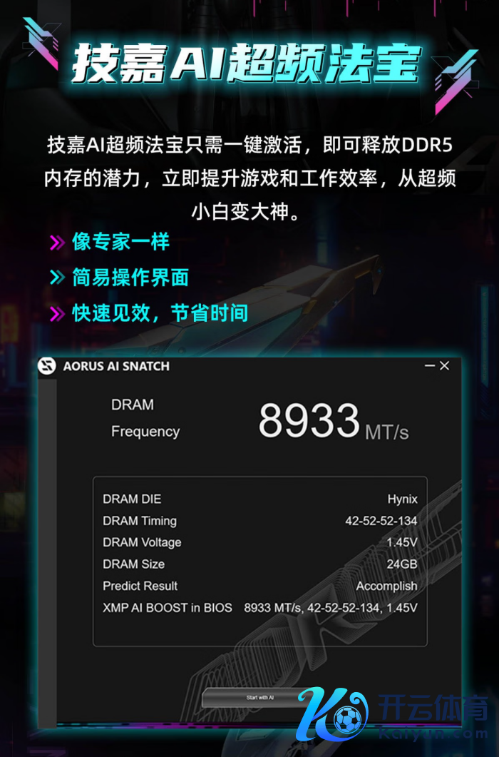 技嘉 B860M 电竞雕主板还复旧 AI D5 黑科技 2.0,官方推出的 AI 超频器具 AI SNATCH,界面卓著下里巴人,点击超频按钮即可一键智能超频,免费赢得 10%-20% 的性能擢升。