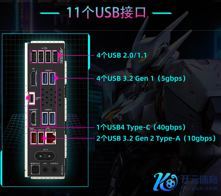 I/O 接口部分则给到了丰富的彭胀组合,比如 11 个 USB-A 口加 1 个 USB-C 口,HDMI2.1 视频输出口,新版快易拆贪图的 WiFi7 增强天线接口,2.5G 有线网口以及麦克风 + 音频接口等。