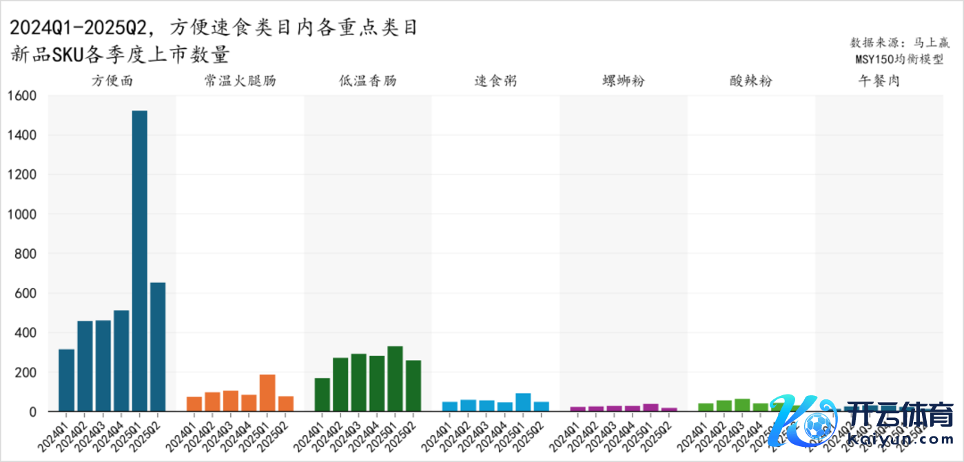 援用浅显速食类目内各重心类目在2024Q1-2025Q2的新品上市数目,也不错看到浅显面新品上市高潮的积极性。在2024Q1-2025Q2时候段内,除2025Q1有一个峰值外,浅显面合座上新数目呈现显赫的上升趋势,当先于浅显速食内其他扫数类目。在2025Q2,单季度上新数目在600个SKU以上。