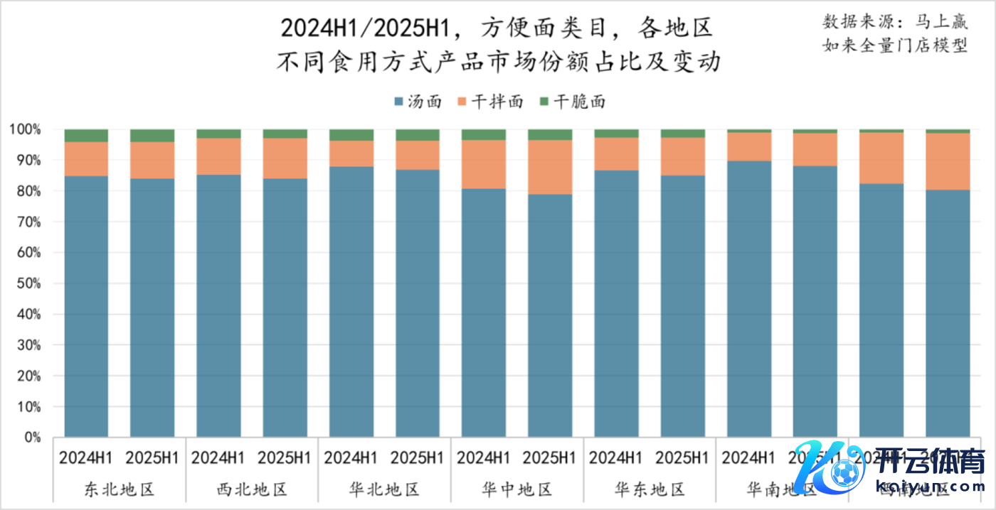从占比来看,汤面阛阓份额突出 80%,2025H1 同比下落 1.47%;干拌面占比约 10%,同比上升 1.36%;干脆面占比不及 3%,同比也有隐微普及。