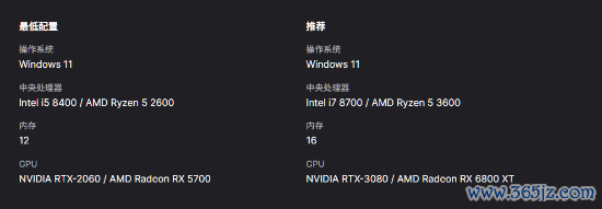 而推选竖立下,PC玩家至少需要Intel i7 8700或AMD Ryzen 5 3600的处治器、16GB内存以及NVIDIA RTX-3080或AMD Radeon RX 6800 XT显卡。