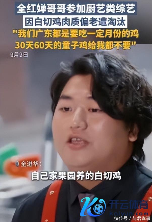 裁剪|Fukasa超勇的 最近一档厨艺综艺火了,不是因为明星大厨,而是奥运冠军全红婵的哥哥全进华,他带着自家养的鸡上节目,作念了谈家乡白切鸡,成果却被淘汰了。 可谁能料想,这一淘汰竟炸出全网盘考,就连官媒齐暗暗革新了驳斥公法,你说这到底是鸡肉确凿不可口,也曾背后有什么不可告东谈主的好意思妙? 全红婵哥哥投入厨综被淘汰 全进华上节目时,一启齿就带着家乡底气,他说我方是村席大厨,十里八乡齐知谈他的时刻,此次选的鸡也不一般,自家果园用五谷杂粮喂了180天,没沾过饲料。