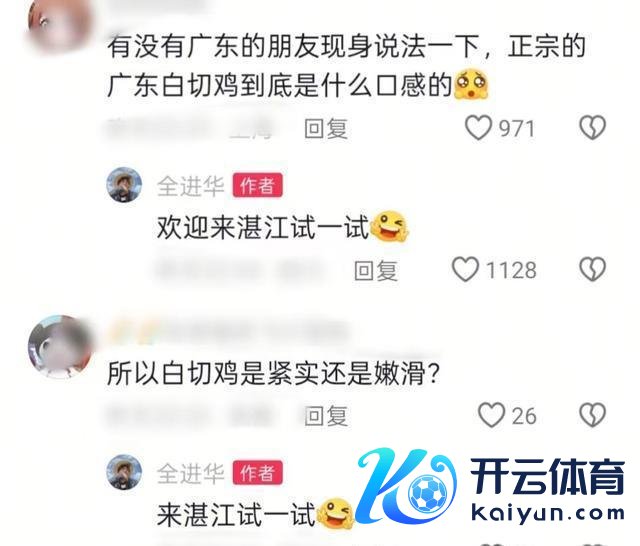 有东谈主说在湛江,白切鸡用嫩鸡根柢没东谈主吃,还有东谈主刻画老鸡嚼着有鸡油香,嫩鸡吃着像嚼纸板,言辞相配真实。 更有益想的是,不少东谈主晒出村里宴席上的白切鸡相片,和全进华作念的对比,解释他这才是正统作念法,这些带图的留言,点赞量粗率就过十万,热度相配高。